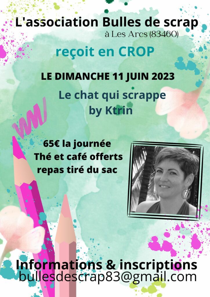 Planning Voici mon planning d'ateliers et crops. J'anime en France et en Belgique. vous êtes une association, un comité d'entreprise, une boutique, vous souhaitez organiser un atelier créatif, contactez moi Le 11 juin 2023 à Les Arc sur Argens (83)